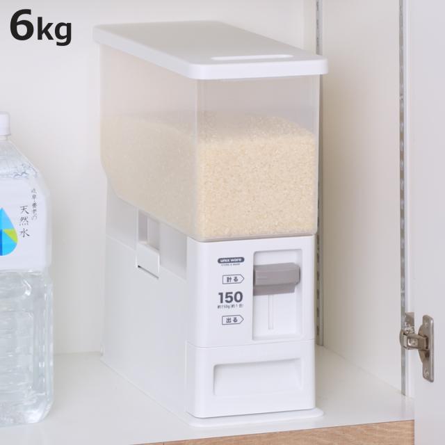 米びつ 計量米びつ 5kg用 6kg ( 1合計量 5kg スリム 組立式 無洗米兼用 ライスストッカー 米櫃 ライスボックス おすすめ こめびつ シンク下 洗える 残量見える お米 コメ 収納 保存容器 レバー 計量 1合 )