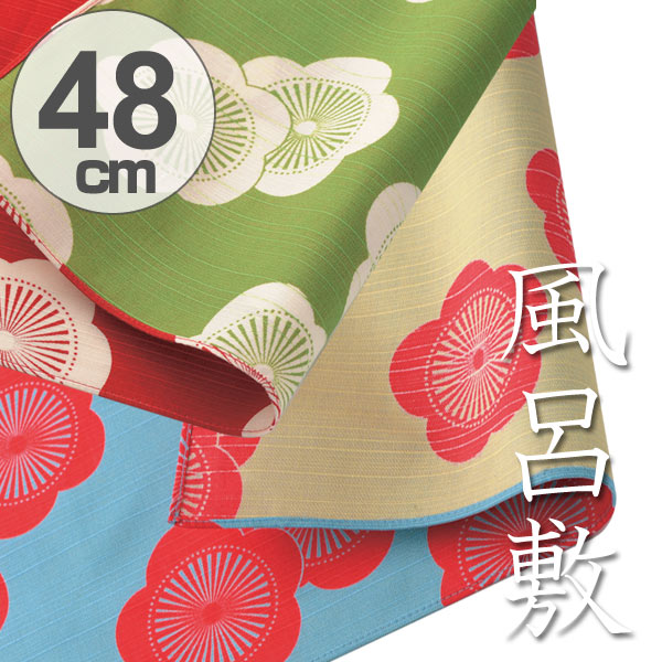 風呂敷 中巾 チーフ 伊砂文様 両面染め 梅 48cm ふろしき ナフキン ランチクロス 綿100% アカ/グリーン ( お弁当包み 綿 小風呂敷 お祝い リバーシブル 両面 弁当包み 包み お弁当グッズ 生地 )