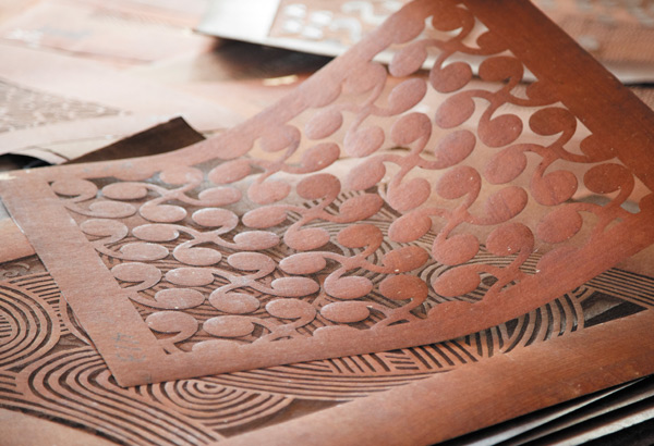 昭和20年代より伊砂文様研究所(伊砂久二雄創設)で生み出された文様。型絵染の伝統技法を用いながらも、斬新かつ繊細な文様は、50年の年月を経た現代も、新しい発見と人々の心を引き付ける魅力にあふれています。