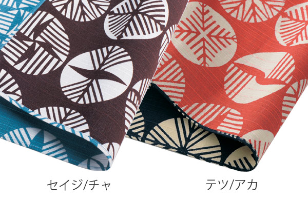 柄に吉祥文様としての意味が込められたインパクトある和柄の両面染め風呂敷です。結んだときに見える裏のデザイン・カラーは違った表情を生み出し、アクセントを加えてくれます。
