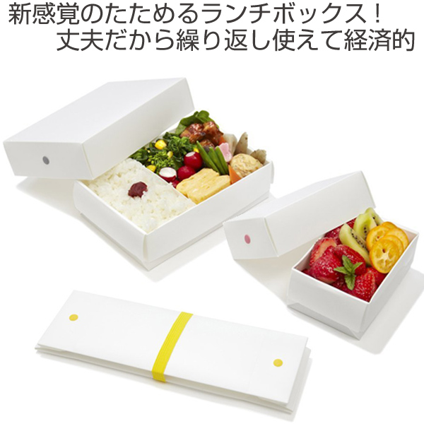 折り畳みランチボックス 一段 620ml 仕切付き バンド付 日本製 スリム 無地 ( お弁当箱 ランチボックス サンドイッチケース 折りたたみ式 弁当箱 コンパクト 電子レンジ対応 ラッピングボックス ギフトボックス 持ち帰り箱 )
