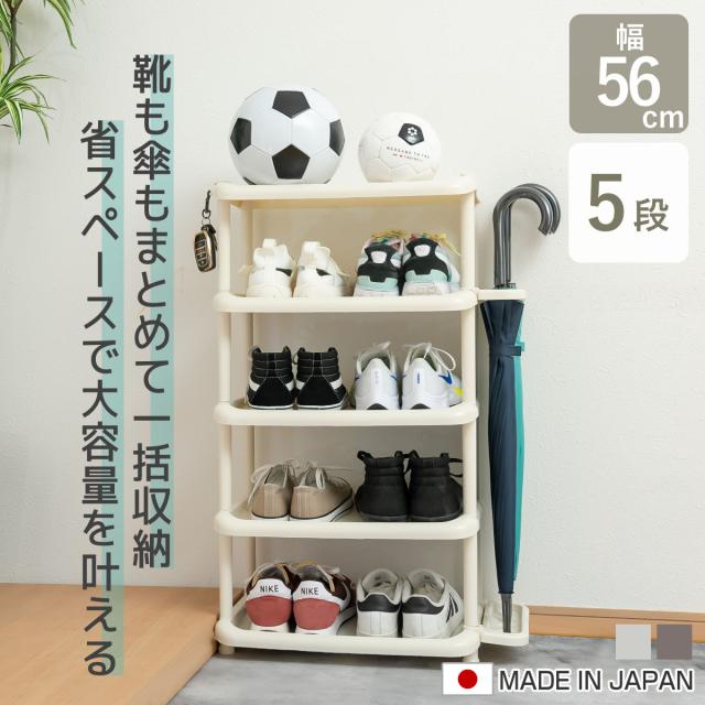 シューズラック ワイド 5段 シューズストレージ 傘立て付き 組立品 ( シューズスタンド 靴収納 下駄箱 靴 収納 ラック 傘立て スリム 簡単 組み立て 幅広 玄関 シューズ 傘たて 玄関収納 省スペース シューズボックス )