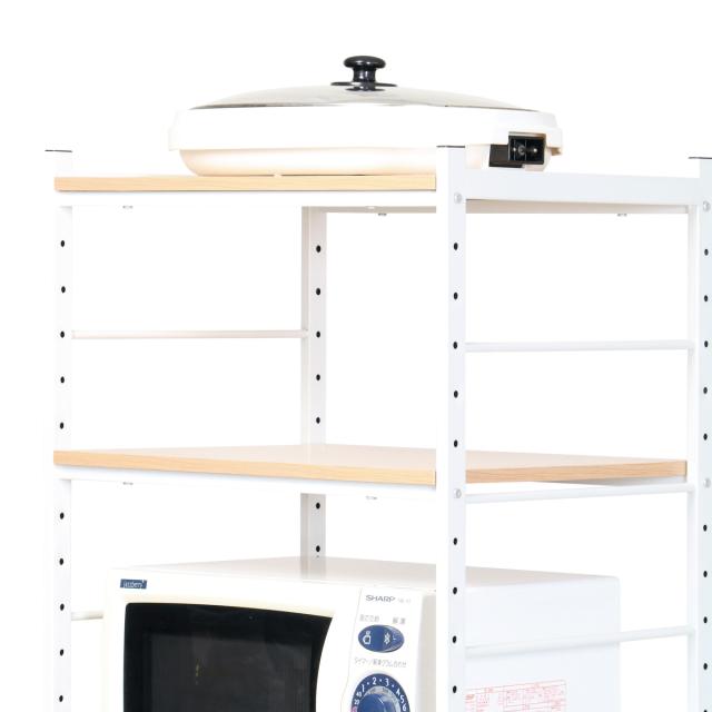 冷蔵庫や収納する物に合わせて棚板を5cmピッチで調節できます。収納の幅が広がりキッチン周りもスッキリします。