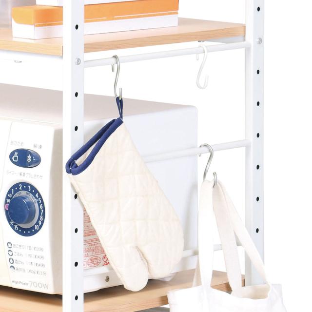 S字フックが3個付属しています。カバンやミトンなどの小物を引っ掛けて置くのに便利です。