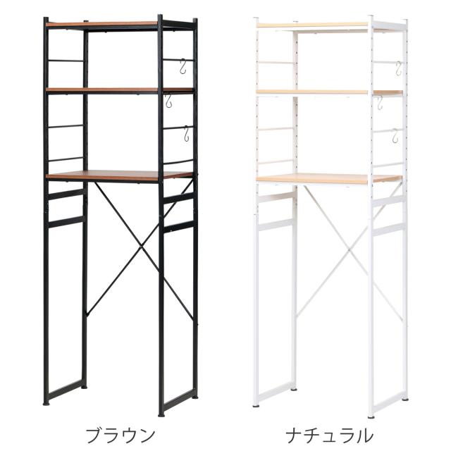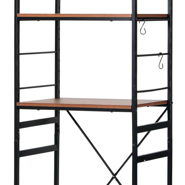 冷蔵庫ラック 幅58cm スチールフレーム 木目調天板 ( 冷蔵庫上ラック キッチン収納 家電収納 冷蔵庫 電子レンジ ラック スチール ゴミ箱収納 スチールラック 食器棚 棚 フック付 ブラウン ナチュラル シンプル )