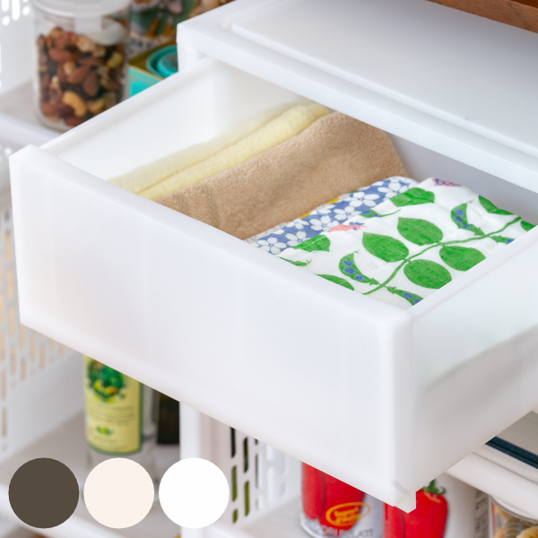 絶妙な透け具合の引き出しは、ほんのり中身を確認できる半透明色です。生活感が出過ぎるものを収納するのに役立ちます。