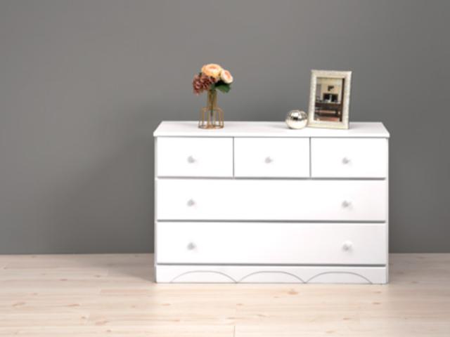5杯の引出しで、衣類や小物をしっかりと収納していただけます。高さを抑えているので圧迫感が少なく、狭いお部屋でも置きやすいサイズ感です。