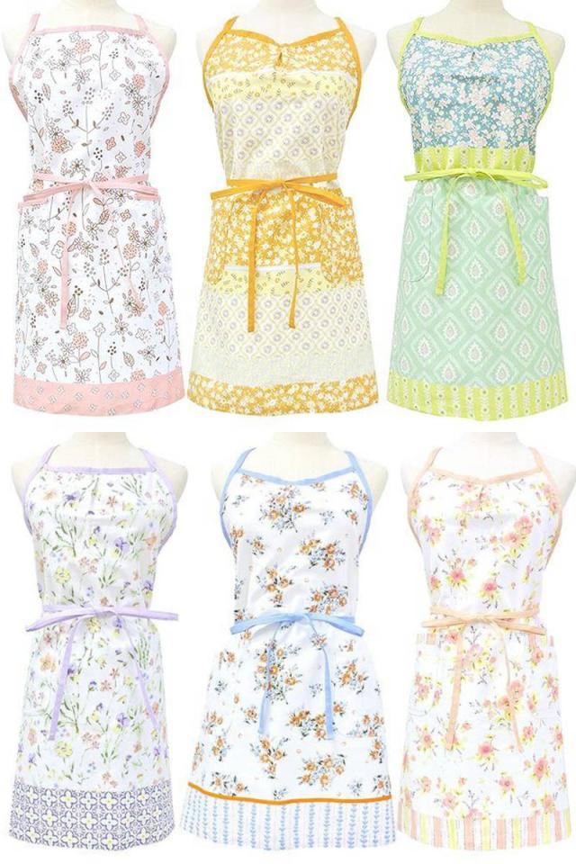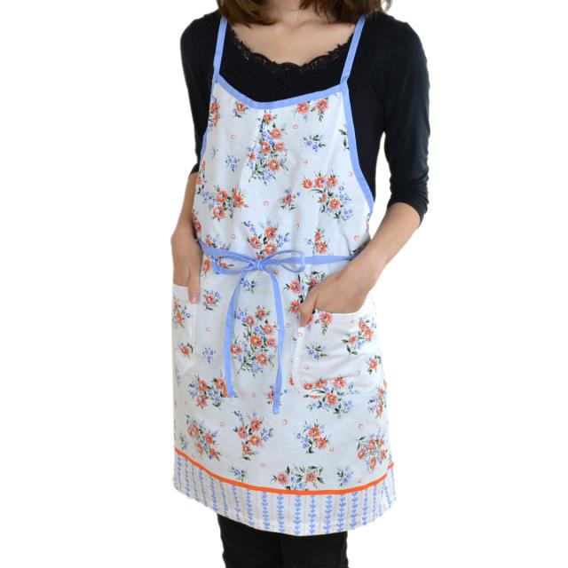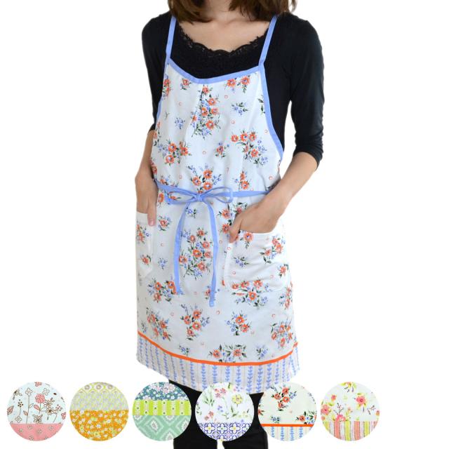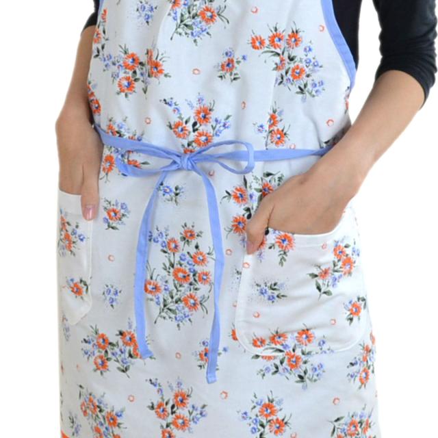 フェミニンな花柄模様が、おしゃれな気分にしてくれる可愛いエプロンです。綿100%で着心地抜群の生地を使用しており、普段使いにピッタリです。また、パッと明るくなるようなデザインがキッチン周りを華やかに魅せ、ワンピースのような雰囲気で身に着けることができます。ご自宅用にはもちろん、新生活を始められる方やお料理好きの方へのプレゼントにもおすすめです。