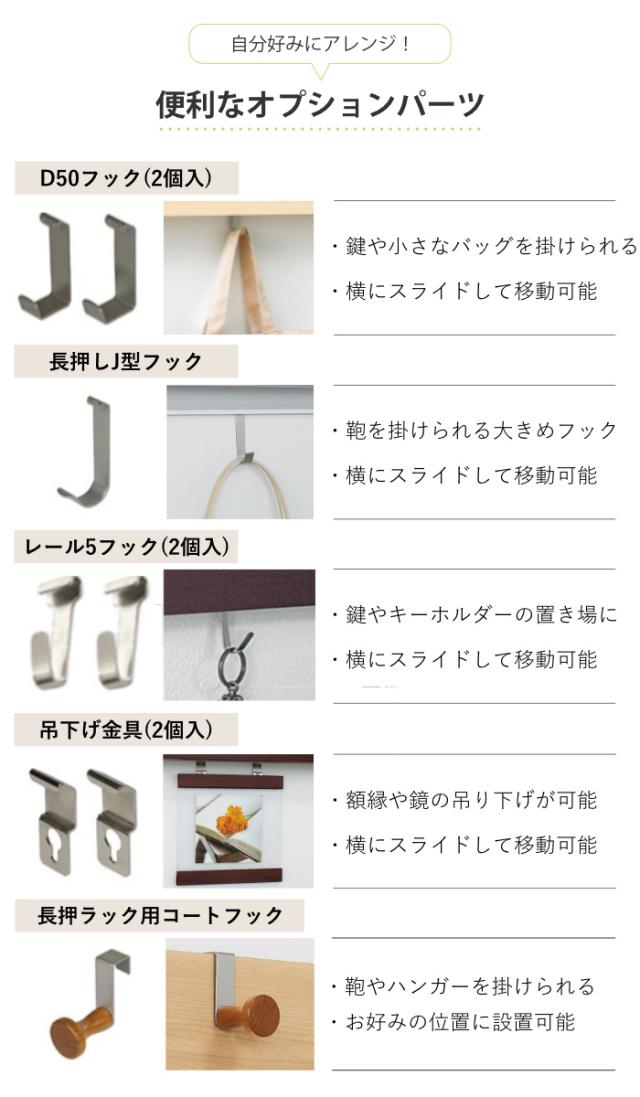 ![]() D50フック(2個入) | ![]() J型フック | ![]() 吊下げ金具(2個入) |