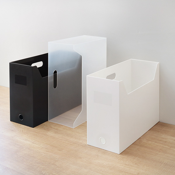 書類やファイルを整理するのに最適なファイルボックスです。デスクの上に置くと、必要な書類をサッと取り出せます。複数置いて、種類別に書類を仕分けるのもオススメです。また、本棚やカラーボックスに入れて仕切りとして使うことも出来ます。