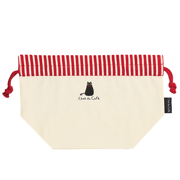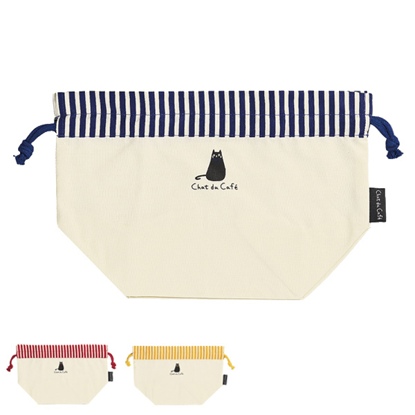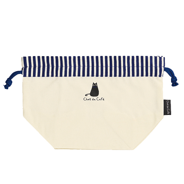 ランチバッグ ランチ巾着 chat chat du cafe ねこ グッズ ( 弁当袋 猫 ネコ ねこグッズ 黒猫 ストライプ柄 弁当包み かわいい 巾着 )