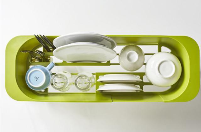 スリットを利用してお皿がたてられて水きり効果も抜群です。