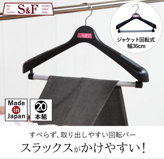 ハンガー すべらない おしゃれ セット 20本組 まとめ買い スーツ スーツ用 スーツハンガー ジャケット コート アウター ズボン ズボン用 スラックス パンツ スラックスハンガー メンズ 男性 レディース 女性 ボトムス プラスチック 軽い 軽量 ブラック 黒 回転フック ク...
