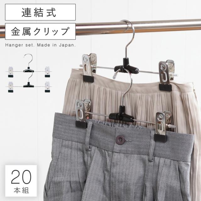 ハンガー すべらない 滑らない おしゃれ 連結 セット 20本組 まとめ買い クリップ付き クリップハンガー クリップ スカート スカートハンガー レディース 女性 ボトムス ボトムハンガー シルバー 銀 日本製 高品質 回転フック 回転 フック クローゼット 収納 シンプル ...