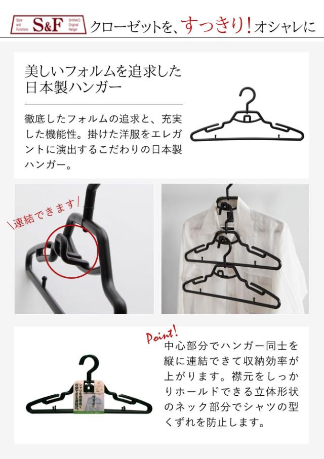 シャツやブラウスを効率よく収納できる連結式ハンガー。