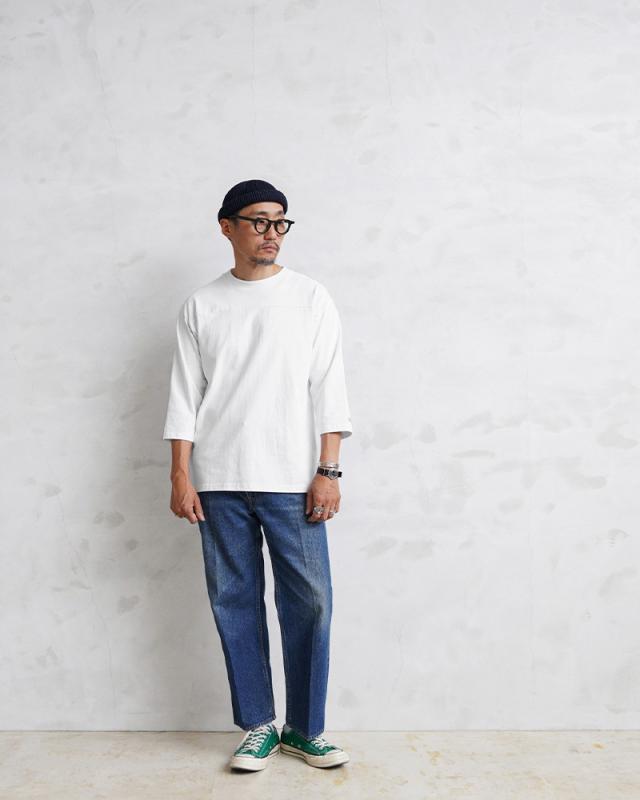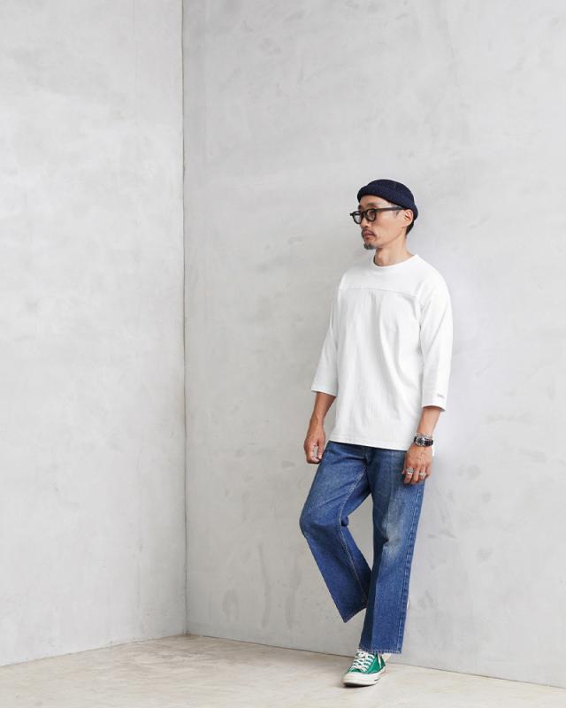 アメリカコットン特有のドライ感に肉厚で縫製強度の高いタフなボディは、着用回数を重ねるほどに体に馴染み雰囲気が増していくので育てる楽しみがある一枚。