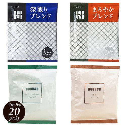 ドトール ドリップパック 4種×5袋 (深煎り・まろやか・キリマンジャロ・モカ) 20袋 ポイント消化 バラ売り 送料無料 お試し