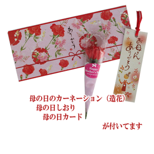 母の日のカーネーション・母の日カード・母の日しおりが付きます。