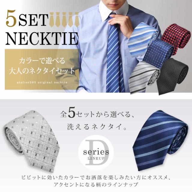 洗えるネクタイシリーズ「Dタイプ」5本セット全5種類