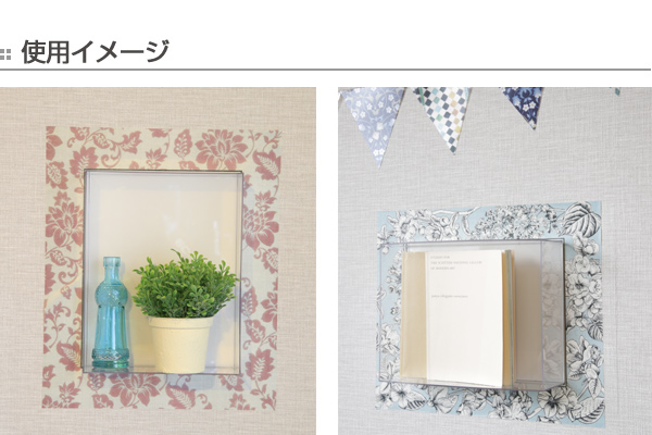 ![]() ![]() ![]() ![]() 壁におしゃれな収納を 壁に貼り付けるだけのシェルフステッカーボックスです。棚の上にしか飾るスペースが無かった観葉植物や小物を、おしゃれにディスプレイすることができます。貼ってはがせるので賃貸のお部屋でも安心してお使いいただけます。 ![]() ![]() 縦・横どちらでも使える ボックスタイプは縦、横どちらの方向でもお使いいただけるので、好みや飾るものに合わせてアレンジできます。 ![]() ![]() 1ヶ所に荷重(500g以上)がかかるとBOXの変形の原因になりますので、重量に余裕を持ち、均等に物を置いてください。 ![]()