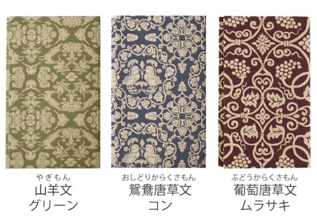 | 種類 | 山羊文グリーン、鴛鴦唐草文コン、葡萄唐草文ムラサキ |