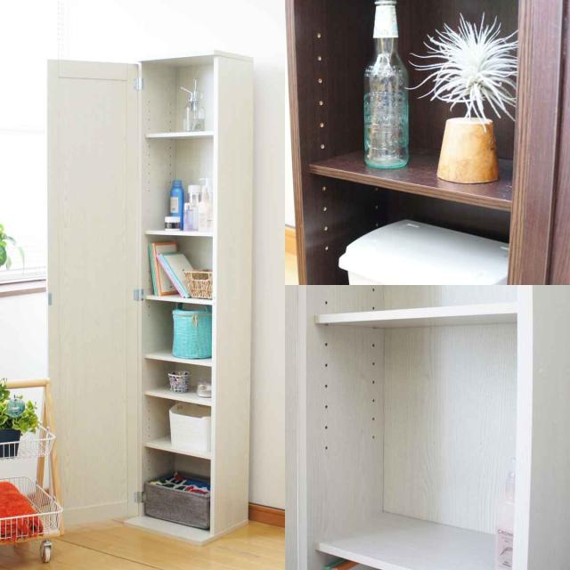 固定棚が2枚、可動棚が4枚付いています。収納する物の高さに合わせて、可動棚は約3cmピッチで好きな位置に調節できます。収納物に合わせて高さを調節できるので、無駄なスペースを作らずスッキリ収納できます。