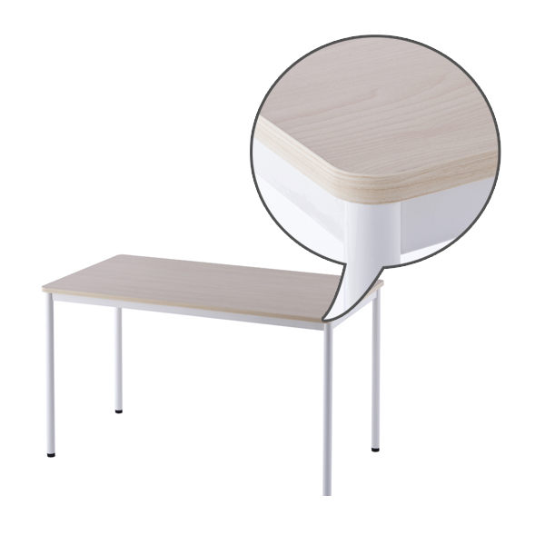 オフィスデスクとしてはもちろんのこと、会議テーブルやワークテーブルとしてもご利用いただけます。滑らかに仕上げられた天板の角は、医療機関や教育施設にも適します。