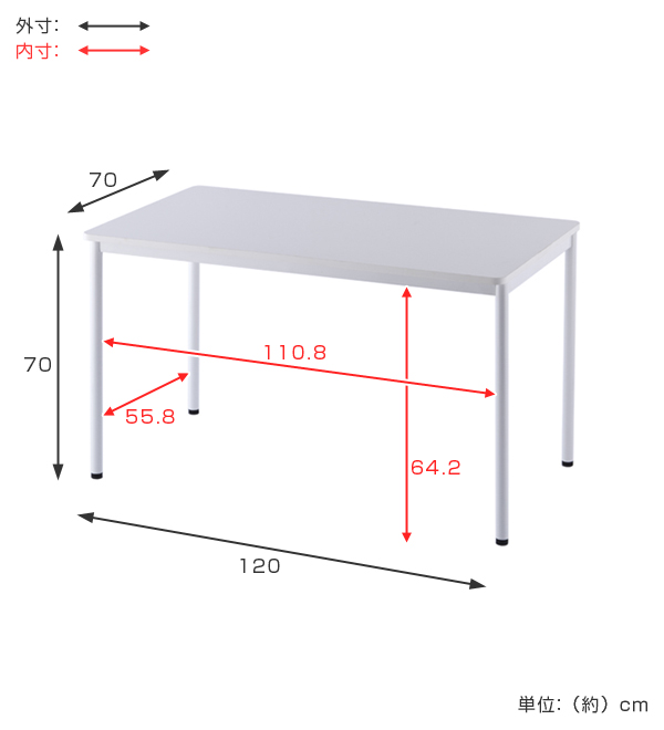 ※天板全体に、均等な力が掛かった場合の耐荷重です。