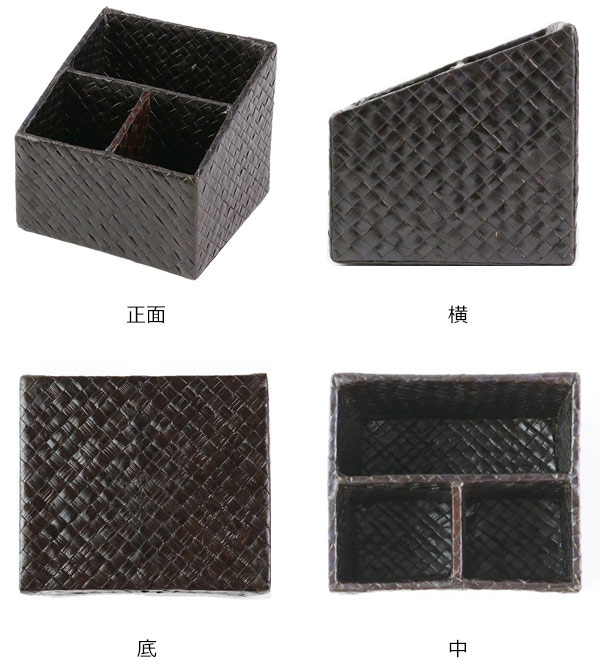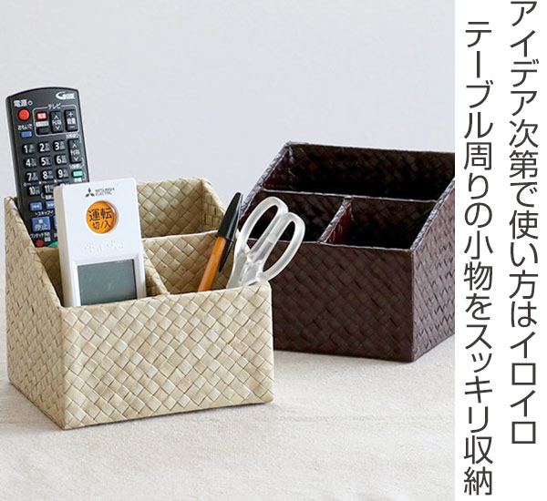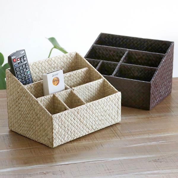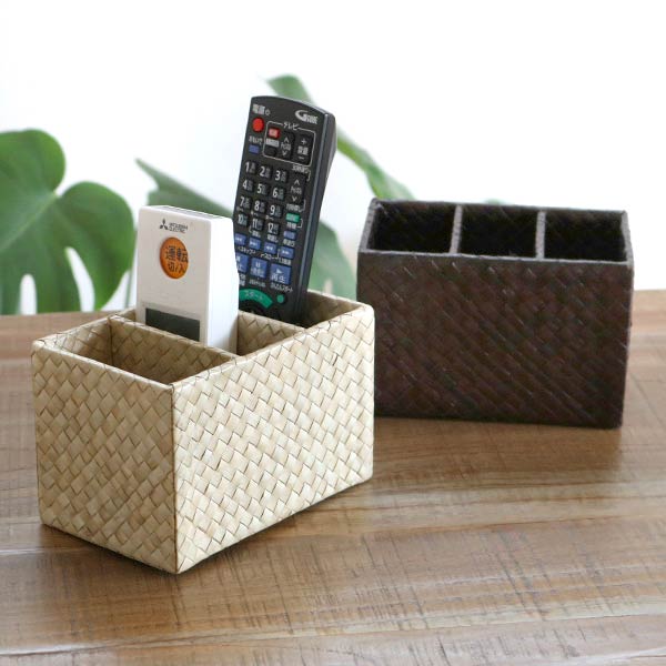 《リモコン収納 デスク収納 卓上収納 ペン立て 机上ラック 小物ケース スマホスタンド 机上 卓上 デスク 整理 スマートフォンホルダー メガネスタンド メガネ立て めがね 眼鏡 入れ 小物ケース テレビ エアコン 筆記用具 文房具 化粧品 メイク道具 かご 編み アジアン 雑貨 シンプル ナチュラル ブラウン 茶》