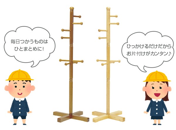 ジュニアハンガー 天然木 ポールハンガー 太タイプ 高さ137cm ( ハンガーラック 子供用 キッズ バ コートハンガー ッグ掛け 洋服掛け 木製 北欧 ナチュラル かわいい 幼児 収納 )