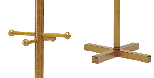 | 掛けやすく取りやすい フックが互い違いに付いているので、掛けているものを取りやすくなっています。先端が丸いので安全にお使いいただけます。 | 安定感がある 支柱の直径が4.3cmあり、しっかりとした作りです。脚がクロスしているので倒れにくく、安定感があります。 |