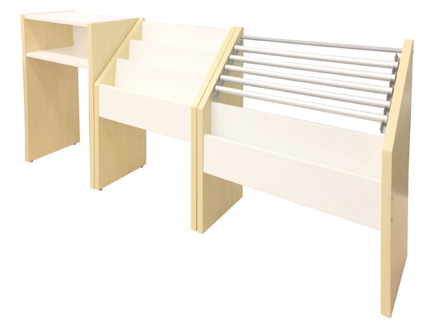 | 材質 | 本体:低圧メラミン樹脂化粧木質ボード、PVCエッジ 新聞ホルダー:アルミ 補強バー・新聞ホルダー受け:スチール(粉体塗装) アジャスター:PP |