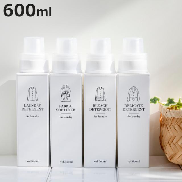 洗剤・柔軟剤・漂白剤・おしゃれ着用洗剤の4種類をご用意しています。シンプルで直感的にわかるイラストと文字が、清潔感あふれるデザインを演出。シリーズで揃えれば、統一感のある心地よいランドリールームが生まれ、毎日の家事がもっと快適になります。