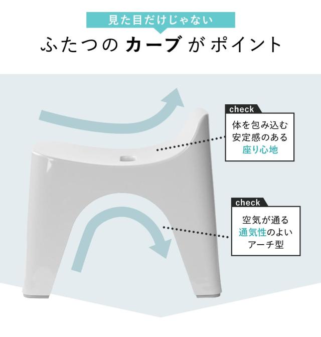 大きく開いたアーチ型の開口部は通気性をしっかりと確保し、湿気がこもりにくい構造です。浴槽に掛けて収納できるので、効率的に乾燥させて水垢やカビの発生を抑えます。