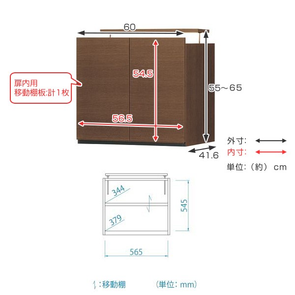 ●幅60cmの各種キャビネット専用の上置き棚です。