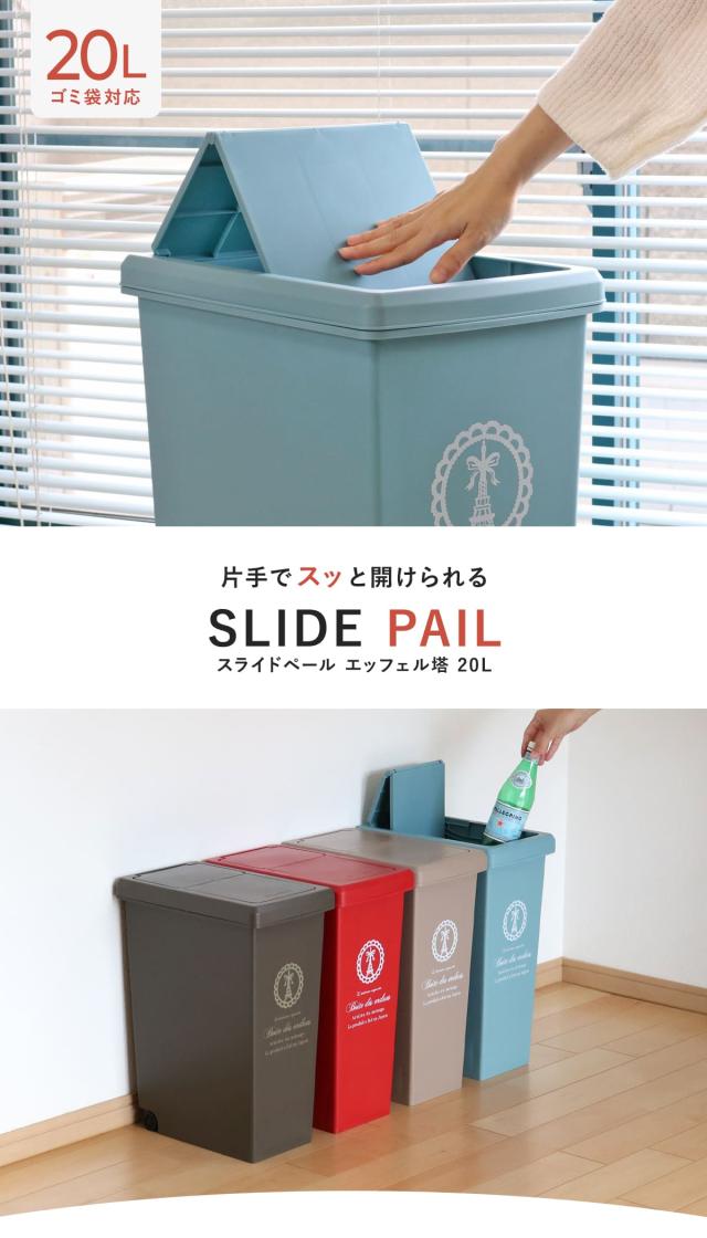 ゴミ箱 20L スライドペール ふた付き エッフェル塔 ( ごみ箱 20リットル ダストボックス スリム 分別 キッチン スライド スライド式 蓋つき 大容量 プラスチック ペール 角型 縦型 フタ付き おしゃれ )