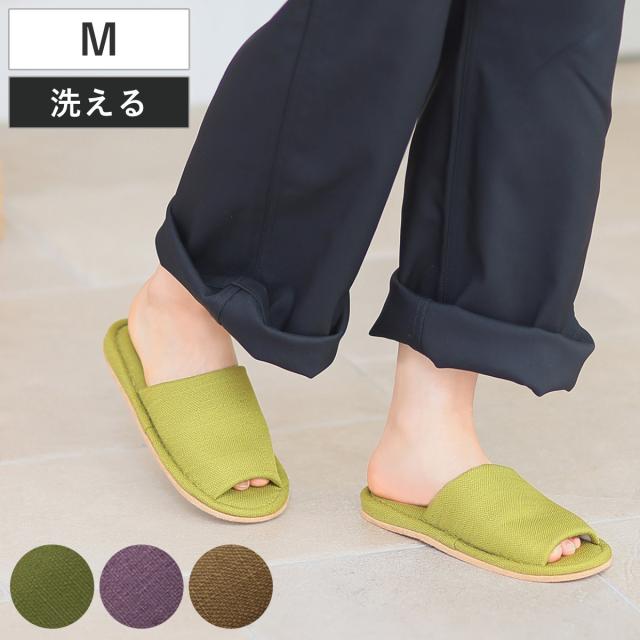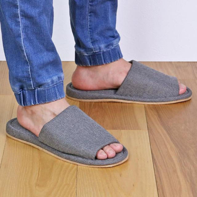 カラーがおしゃれで、シンプルデザインのリネン風生地のスリッパです。和風やモダンなど様々なテイストのインテリアに合わせていただけ、カジュアル過ぎないデザインはお客様用や店舗用としてもおすすめです。また、丸洗いできるのでいつも清潔にお使いいただけます。