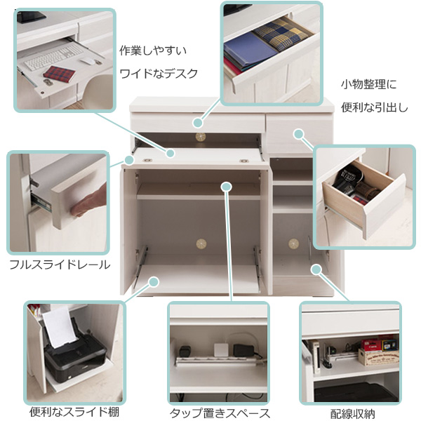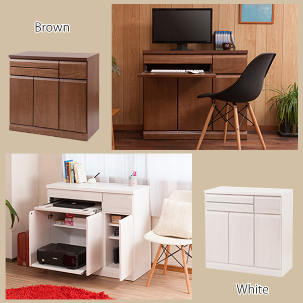 《 オフィスデスク パソコン PC 収納 木製 書斎机 ラック シンプル ホワイト 白 ブラウン 茶 90cm 90センチ シンプル おしゃれ オシャレ TE-0133、TE-0134 》