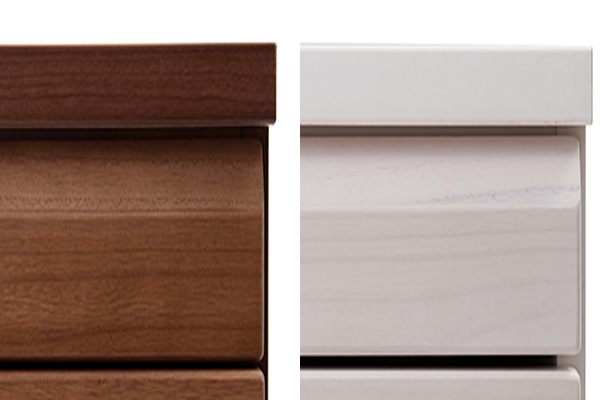 前板を斜めにカットしたデザインで取っ手も見えずシンプルで高級感溢れる仕上がりです。完成品なので届いてすぐにお使いいただけます。