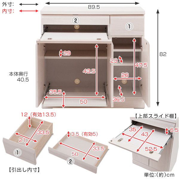 | サイズ | 約 幅89.5×奥行40.5×高さ82(cm) |