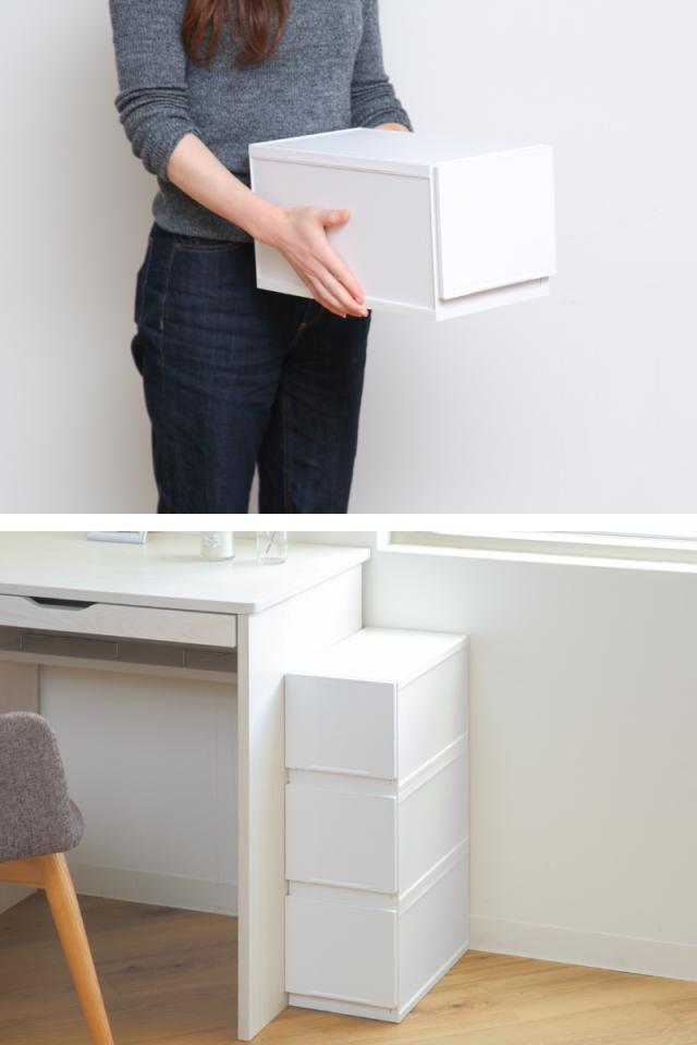 収納ケース 幅18.8×奥行35.8×高さ18.8cm 同色3個セット コレクトケース Mスリム 1段 squ+ ( 収納 収納ボックス 引き出し 日本製 積み重ね 衣装ケース 中が透けない 衣類 洋服 白 スリム おしゃれ 仕切り 小物収納 )