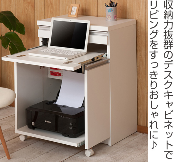 パソコンデスク PCデスク キャビネット型 スタイリッシュ 幅60cm ( 完成品 日本製 国産 幅60センチ デスク キャビネット シンプル 茶 ベーシック リビング 白 )