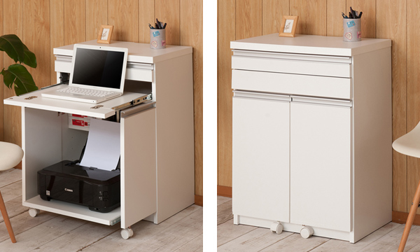 収納&お仕事スペースに1台2役のデスクキャビネット