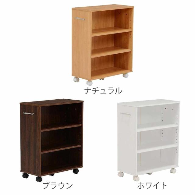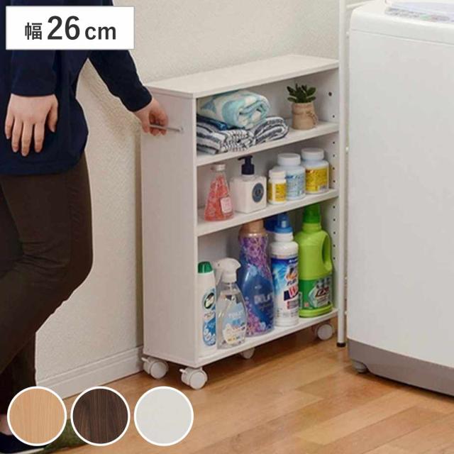 すきま収納ラック 幅26cm キャスター付 可動棚 3段 ( マガジンラック 本棚 収納棚 オープンラック クローゼット収納 隙間収納 収納 ラック シェルフ 木製 本 漫画 文庫本 コミック マンガ CD DVD ブルーレイ )