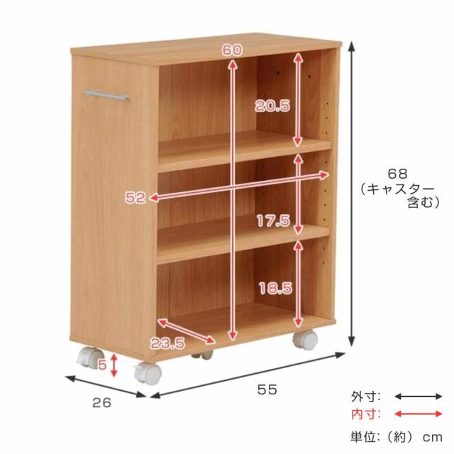 | サイズ | 約 幅26×奥行55×高さ68(cm) 棚板厚さ:約 1.5(cm) |