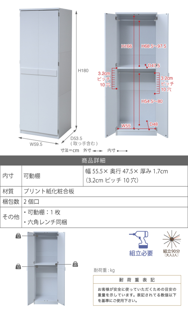 | サイズ | 約 幅59.5×奥行53.5×高さ180(cm) |