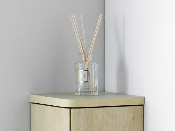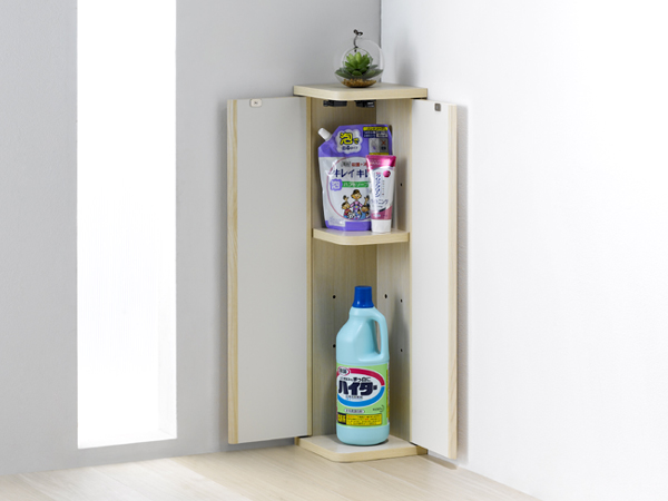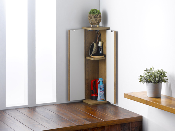 ●扉をL型に2枚取り付けたことで、お部屋のコーナーや他の家具の脇にピッタリ納まります。
