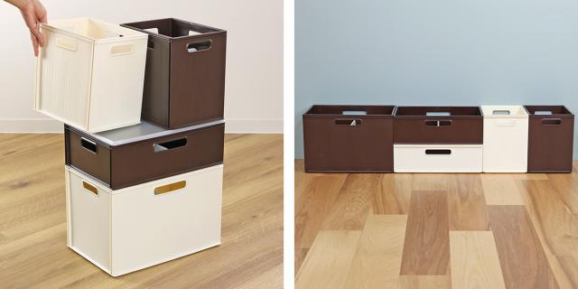 積み重ねられるので、収納したい物に合わせて自由にカスタマイズを楽しめます。シリーズでそろえれば、統一感のある見た目で、スッキリと収納できます。リビング、キッチン、オフィスなどさまざまな場所にフィットする使いやすいデザインです。