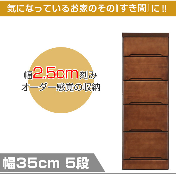 スリムチェスト 5段 すき間収納 引き出し 木製 幅35cm ( タンス チェスト ランドリーチェスト 整理タンス 完成品 収納 隙間 すきま 整理 衣類収納 )