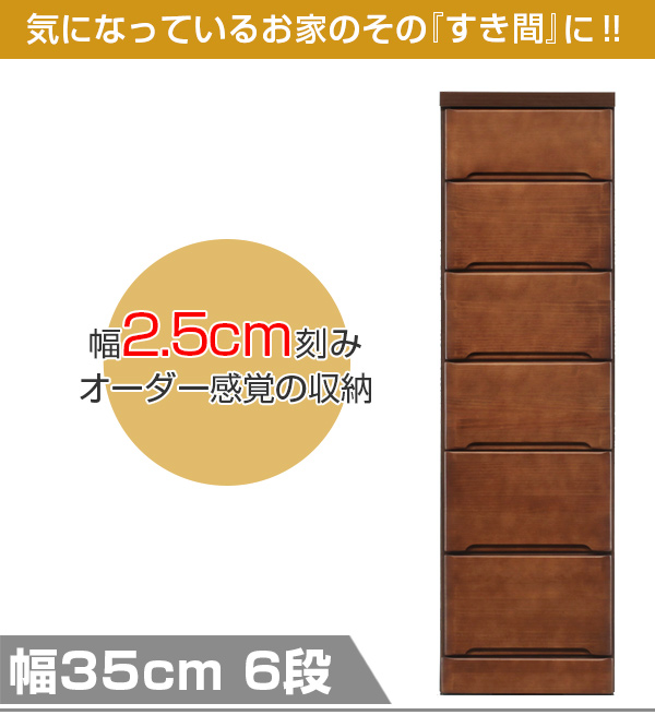 スリムチェスト 6段 すき間収納 引き出し 木製 幅35cm ( タンス チェスト ランドリーチェスト 整理タンス 完成品 収納 隙間 すきま 整理 衣類収納 )